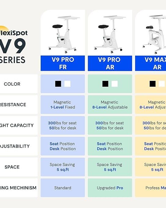FLEXISPOT Exercise Bike with 2D Desktop, Space Saving Under Desk Bike with Removable Desk, Stationary Bikes Indoor Bikes with 300LBS Heavy Duty 8-Level Resistance Flywheel Optional LCD, V9PRO/V9MAX