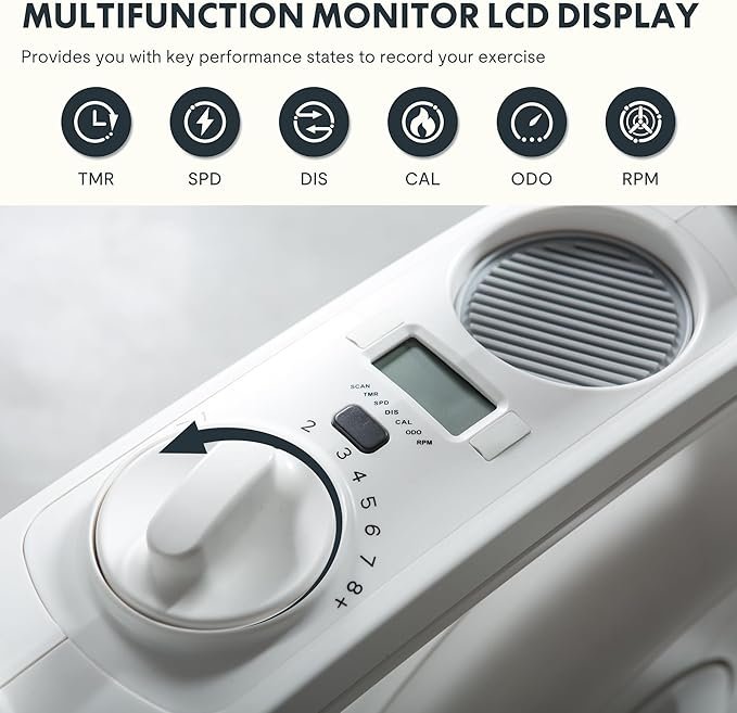 4. ✅【LCD Exercise Tracker】Monitor your workout stats on the built-in LCD. Keep tabs on real-time data such as time, speed, distance, calories burned, total distance covered, and rotation speed.ATTENTION: the battery is not included