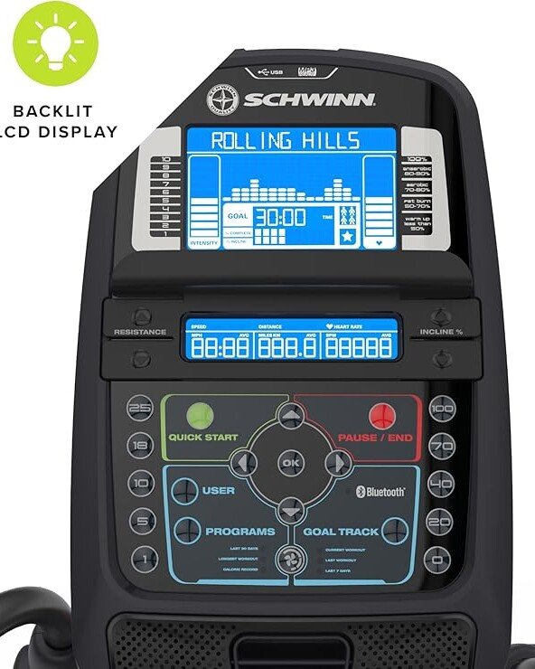 - DualTrack blue backlit LCD system displays 29 workout programs