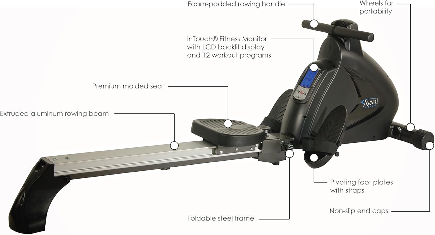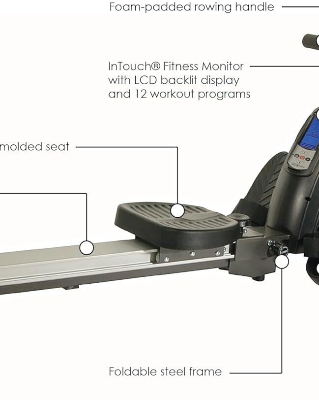 4. LCD backlit fitness monitor; Extruded aluminum rowing beam