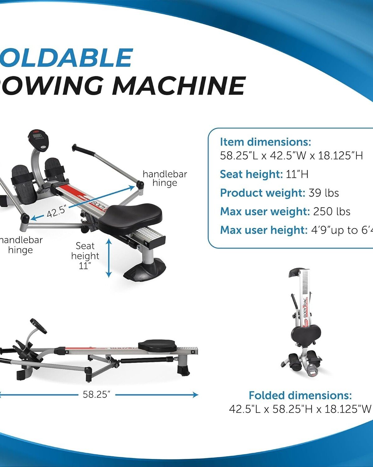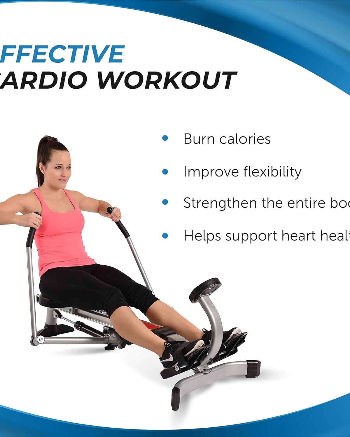 Full-body rower machine strengthens and tightens your back, legs, arms, abdominals, and glute muscles that can support up to 250 pounds of weight