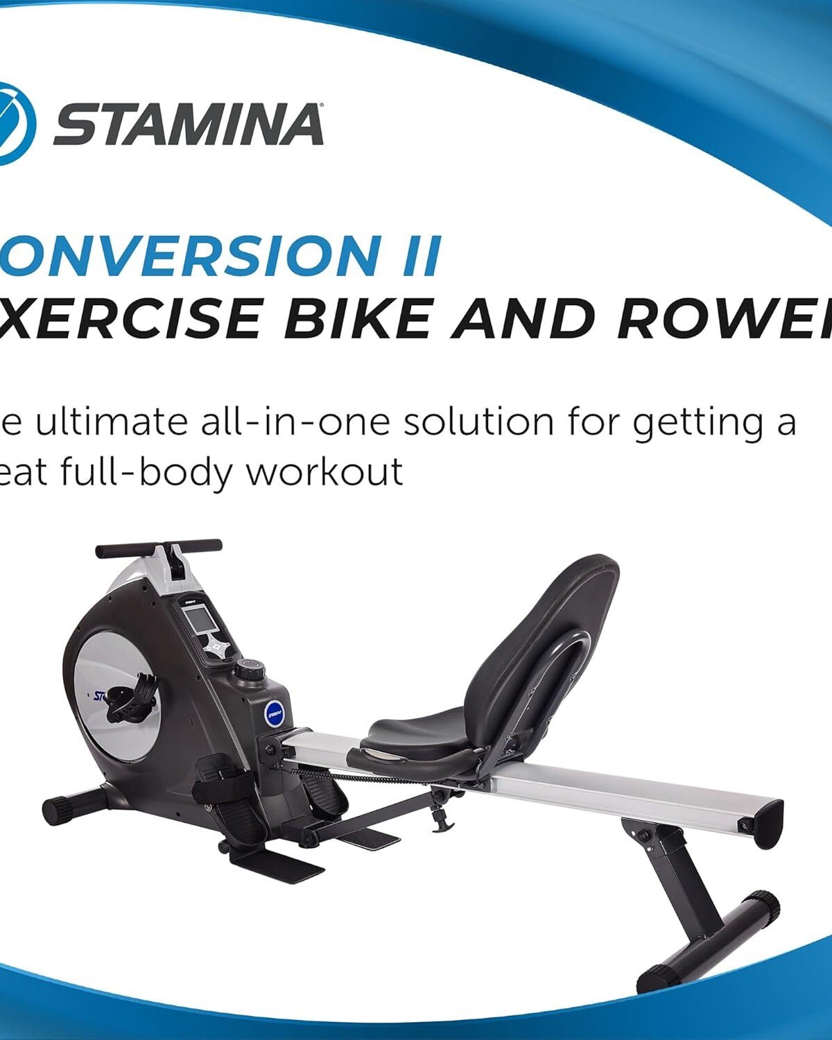 Stamina Conversion II Recumbent Exercise Bike and Rower – Cardio Machine with Smart Workout App – Exercise Bike for Home Workout – Up to 250 lbs Weight Capacity