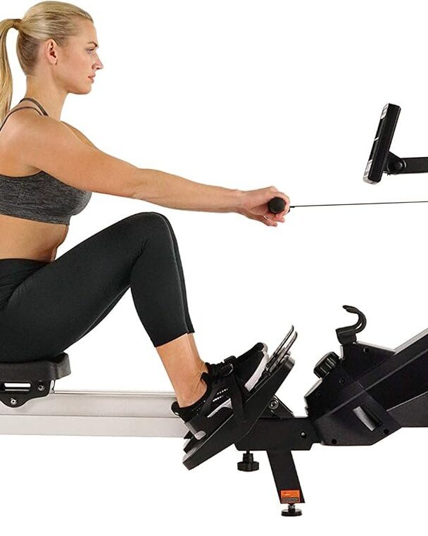 Sunny Health & Fitness Premium Smart Air & Magnetic Resistance Rowing Machine, Foldable Long Silding Rail Exercise Rower for Home Training, Optional Free SunnyFit App