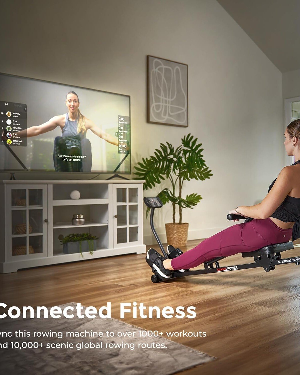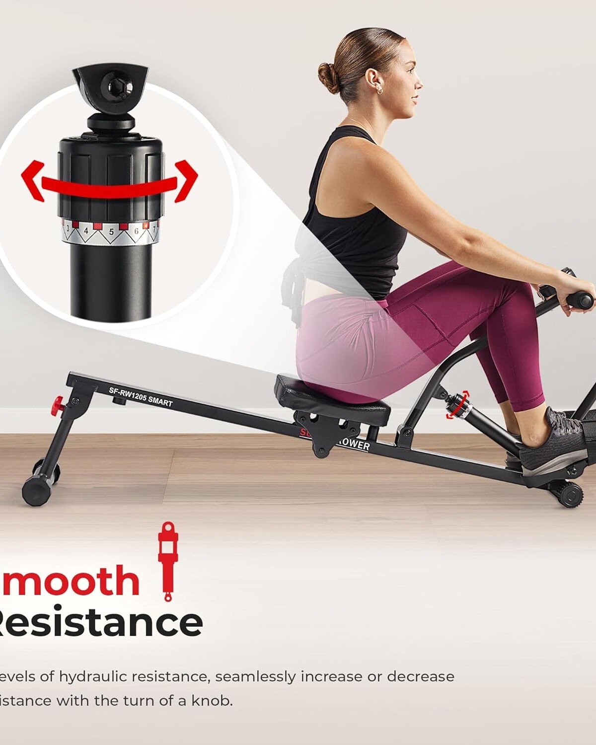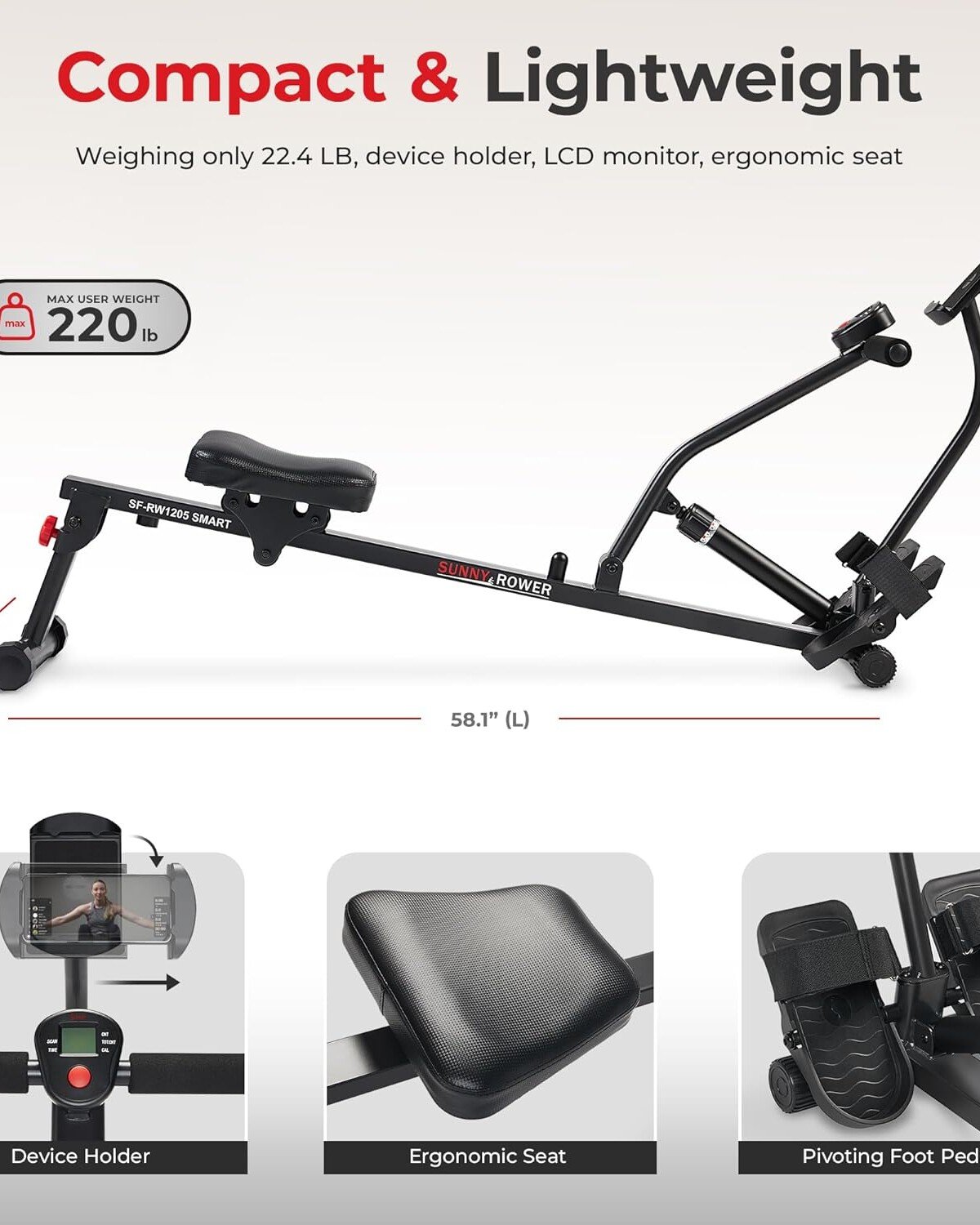 Sunny Health & Fitness Compact Adjustable Rowing Machine with 12 Levels of Resistance for Complete Body Workouts and Optional Free SunnyFit App Enhanced Connectivity