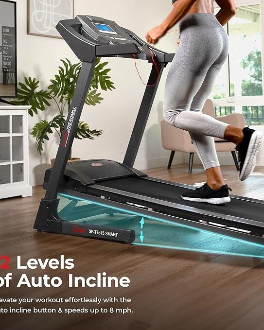 Sunny Health & Fitness Premium Smart Treadmill with Auto Incline and Free SunnyFit App Connectivity