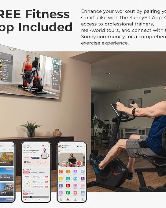 - 【FREE CONNECTED APP】 Enjoy FREE access to the SunnyFit App with every Sunny Health & Fitness product—no membership fees! Dive into 1,000+ trainer-led workouts, explore 10,000+ virtual scenic tours, track your progress, challenge others, and much more!