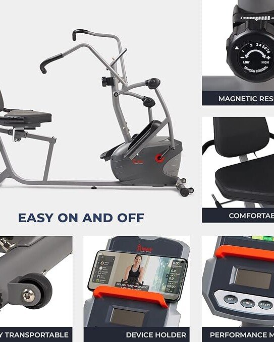 Sunny Health & Fitness Smart Recumbent Bike, Full-Body Home Training with Arm/Leg Exercisers, Indoor Cycling Workout Machine Plus Adjustable Seat & Bulit-in Pulse Sensors, Free SunnyFit App Connection